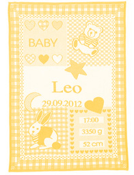 Merkitse vauvasi nimi, syntymäpäivä, paino ja pituus suloiseen vauvan peittoon.